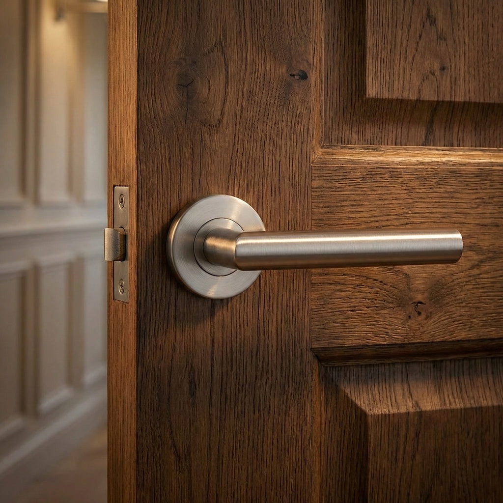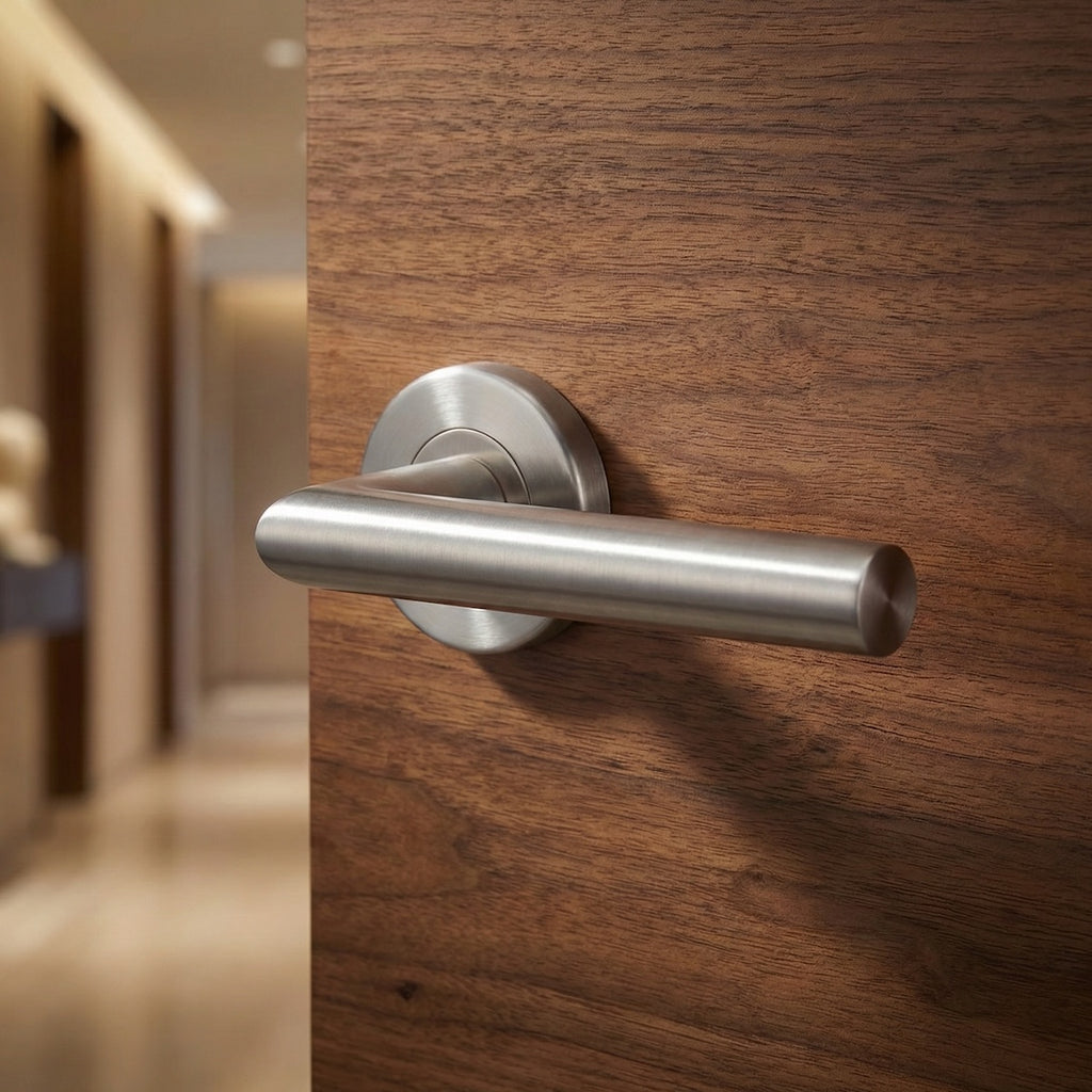 Handle set (2 handles for one door) Morrigan tubular handles with round stainless steel rosette for interior and exterior doors. This tubular rosette model is a classic model that brings beauty and aesthetics to all doors. Thanks to its satin nickel finish and its design, it combines with all doors, providing elegance and simplicity. It comes with all installation accessories included and has outrageous prices. What are you waiting for to get it?