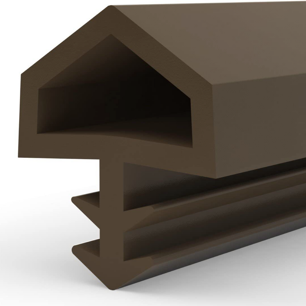 - 25 metros de burlete marrón de PVC junta perimetral de empotrar con forma de casa ideal para puertas y ventanas.