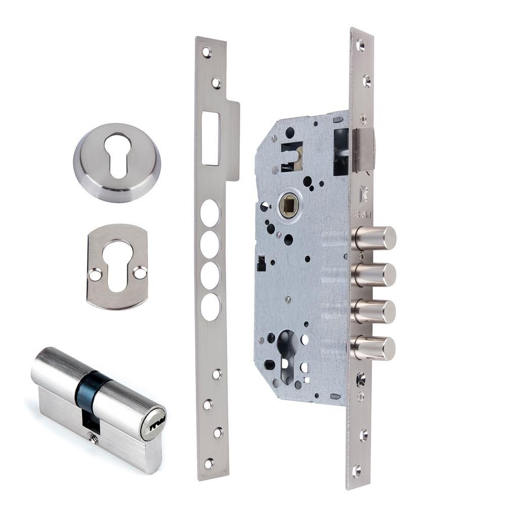 - Incluye escudo protector y pletina para el marco de la puerta.