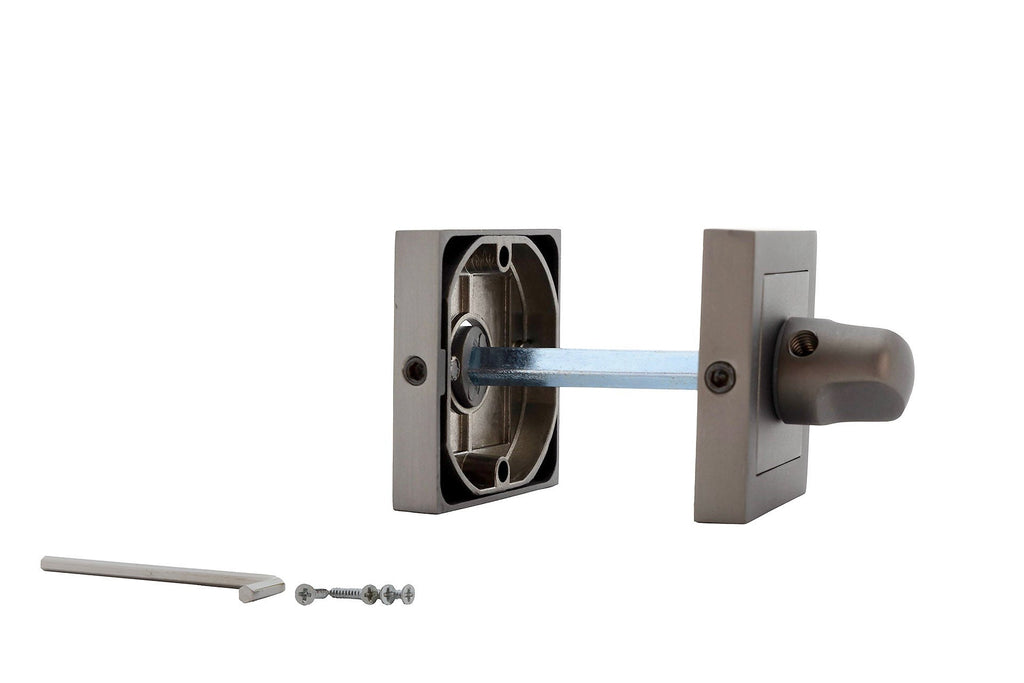 - Se coloca por ambos lados de la puerta para poder desbloquear por el exterior en caso de necesidad con un destornillador o moneda.