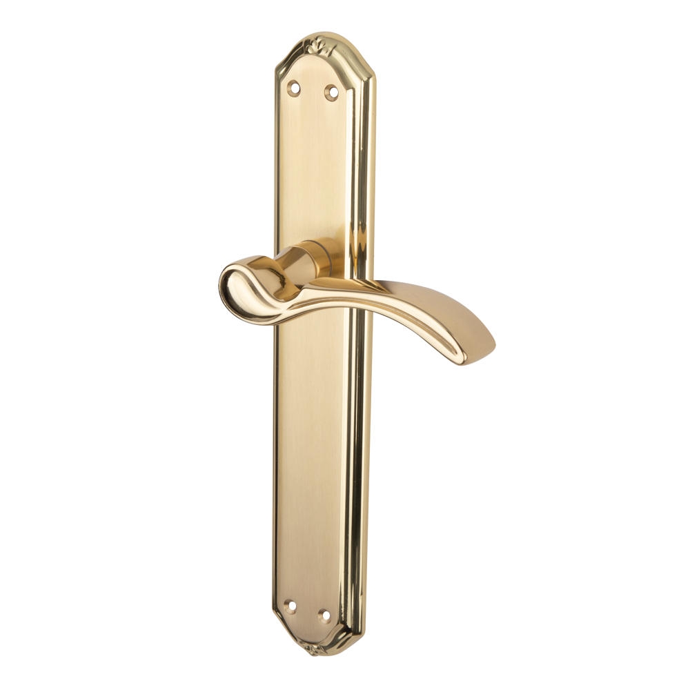 Juego de manillas (2 manillas; 1 manilla para cada lado de la puerta) con placa ovalada de latón acabado dorado brillo para puertas de interior modelo 2011. Esta elegante, vanguardista y moderna manilla de latón es ideal para vestir las puertas de tu hogar. Es una manilla con placa de alto standing preparada para soportar una gran intensidad de uso y aportar una luz importante a las puertas de tu hogar. Además, viene con todos los accesorios necesarios para su instalación.
