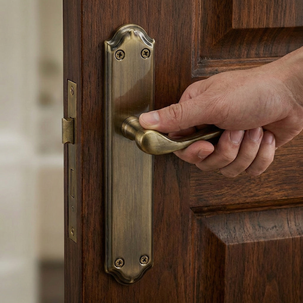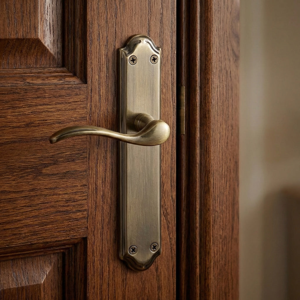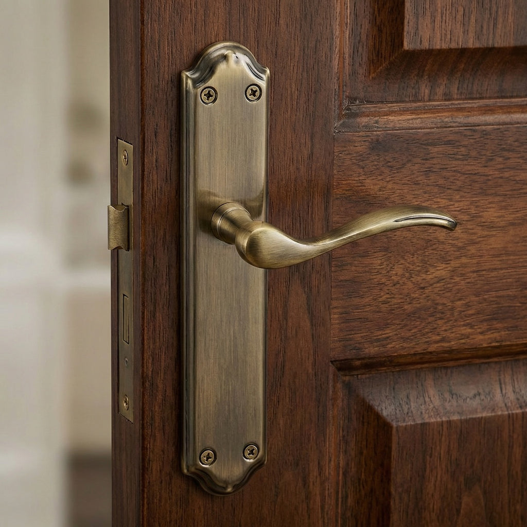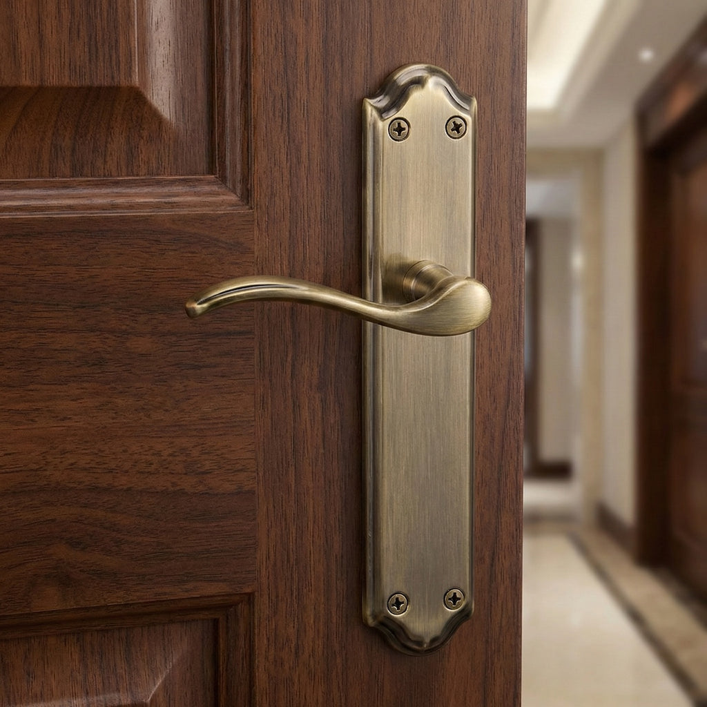 Juego de manillas (2 manillas; 1 para cada lado de la puerta) con placa ovalada curva modelo 301 de aluminio en acabado cuero para puertas de interior. Este juego de manillas con placa tiene un diseño rústico ideal para conjuntar con cualquier puerta. El cuero es un acabado especial que conjunta con la mayoría de puertas y el aluminio un material preparado para soportar cierta intensidad de uso. Si no te lo crees, pruébalo. Además, incluye todos los accesorios necesarios para su instalación.