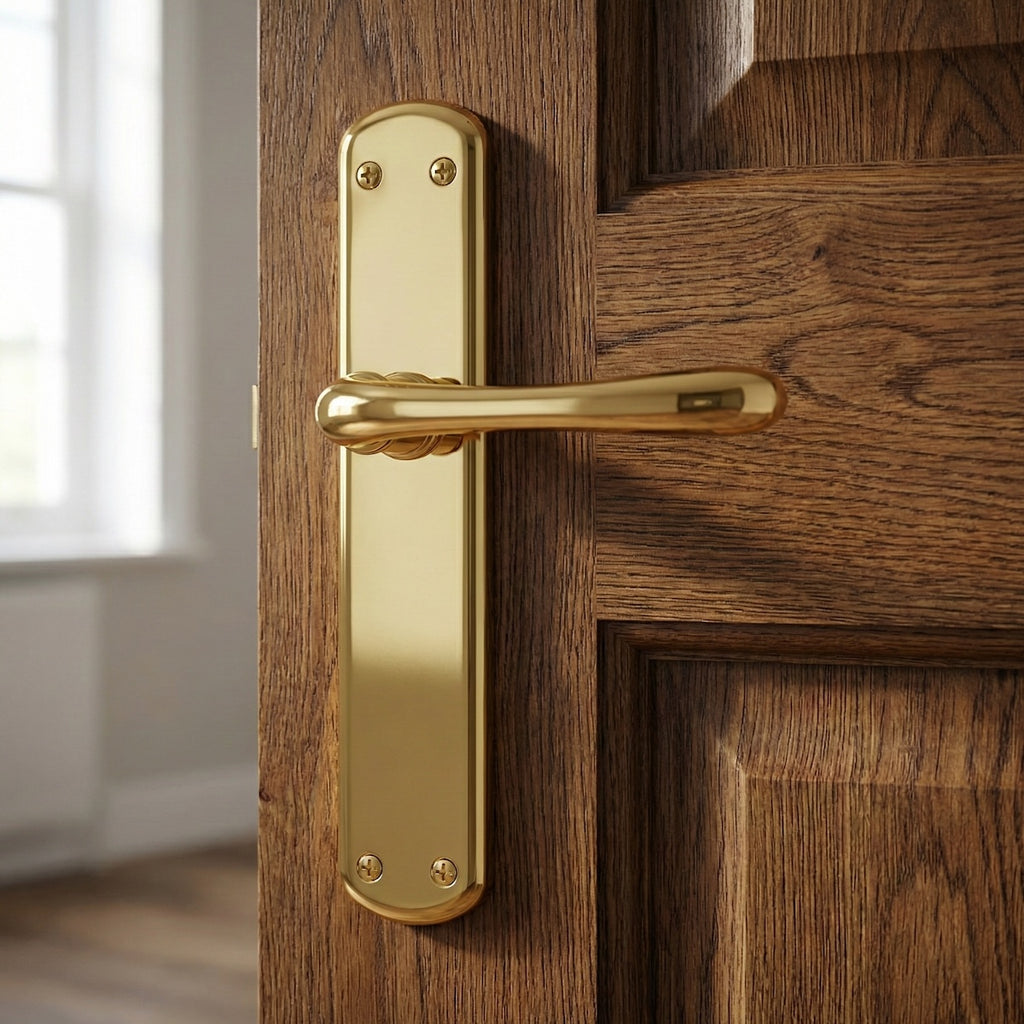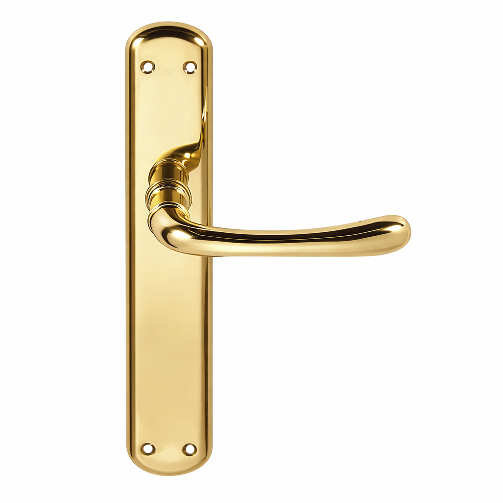 Juego de manillas (1 manilla para cada lado de la puerta) con placa ovalada para puertas de interior modelo 6501 en acabado dorado brillo con asa gorda. Esta manilla es un modelo clásico ideal para renovar las manillas de tus puertas. Su acabado dorado brillo hace que aporte elegancia hasta en los pequeños detalles de tu hogar y un toque de luz muy particular. Además, viene con todos los accesorios de instalación incluidos por lo que ¿A qué esperas para renovar las manillas de tus puertas?