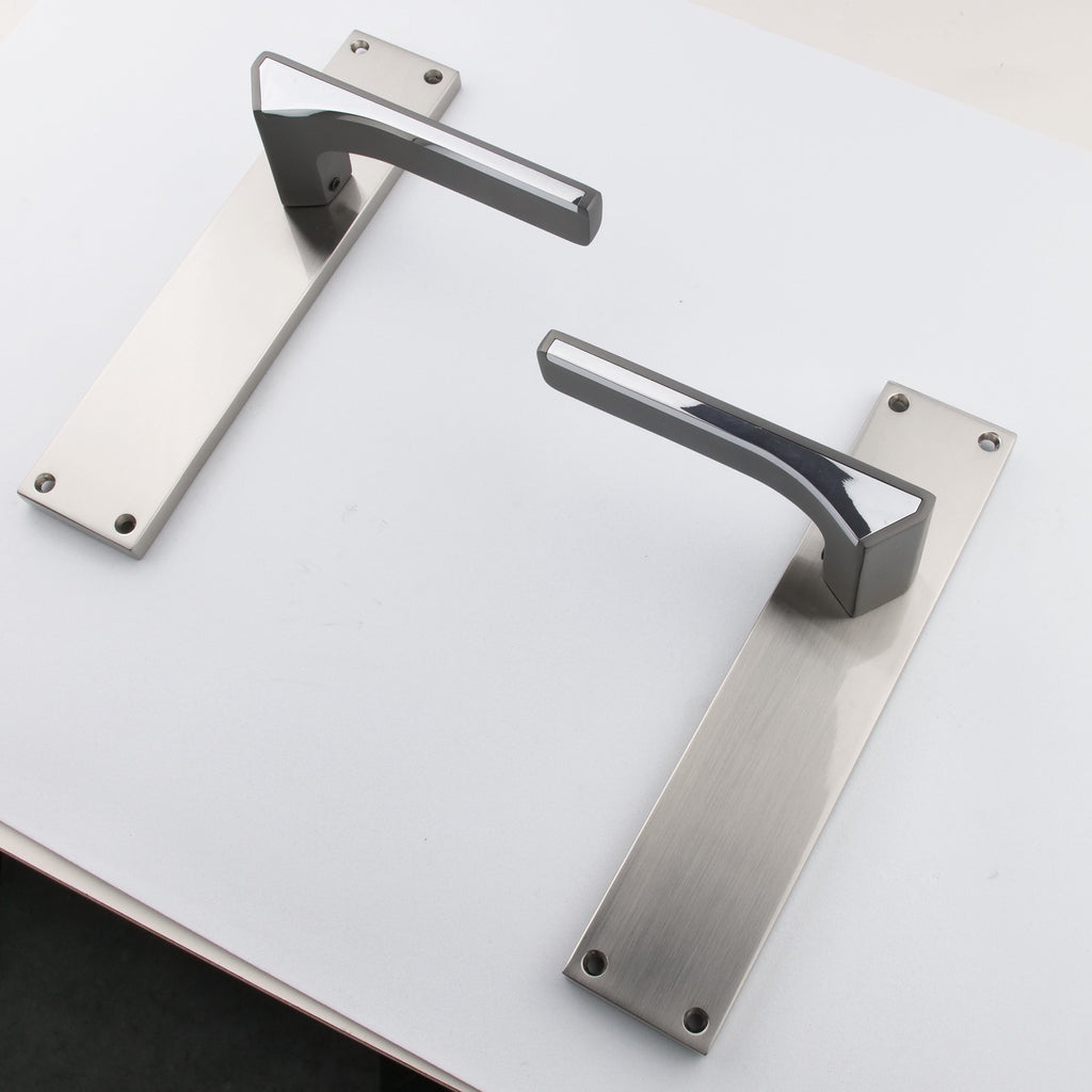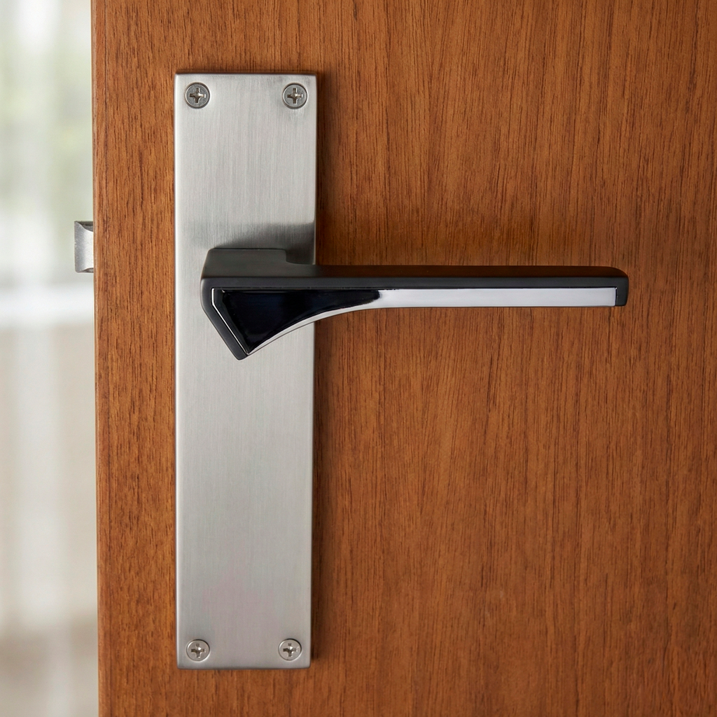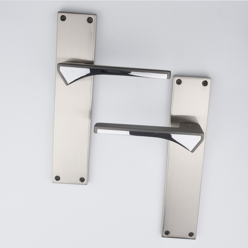 Juego de manillas (2 manillas; 1 manilla para cada lado de la puerta) con placa rectangular de zamak en acabado bicolor con grafito en el asa para puertas de interior. Esta manilla es de nuestros modelos más estéticos. Su diseño elegante y cargado de detalles aporta a tus puertas un toque vanguardista y moderno. Además, es una manilla de alto standing capaz de soportar mucha intensidad de uso por lo que ¿A qué esperas para renovar las manillas de tus puertas?
