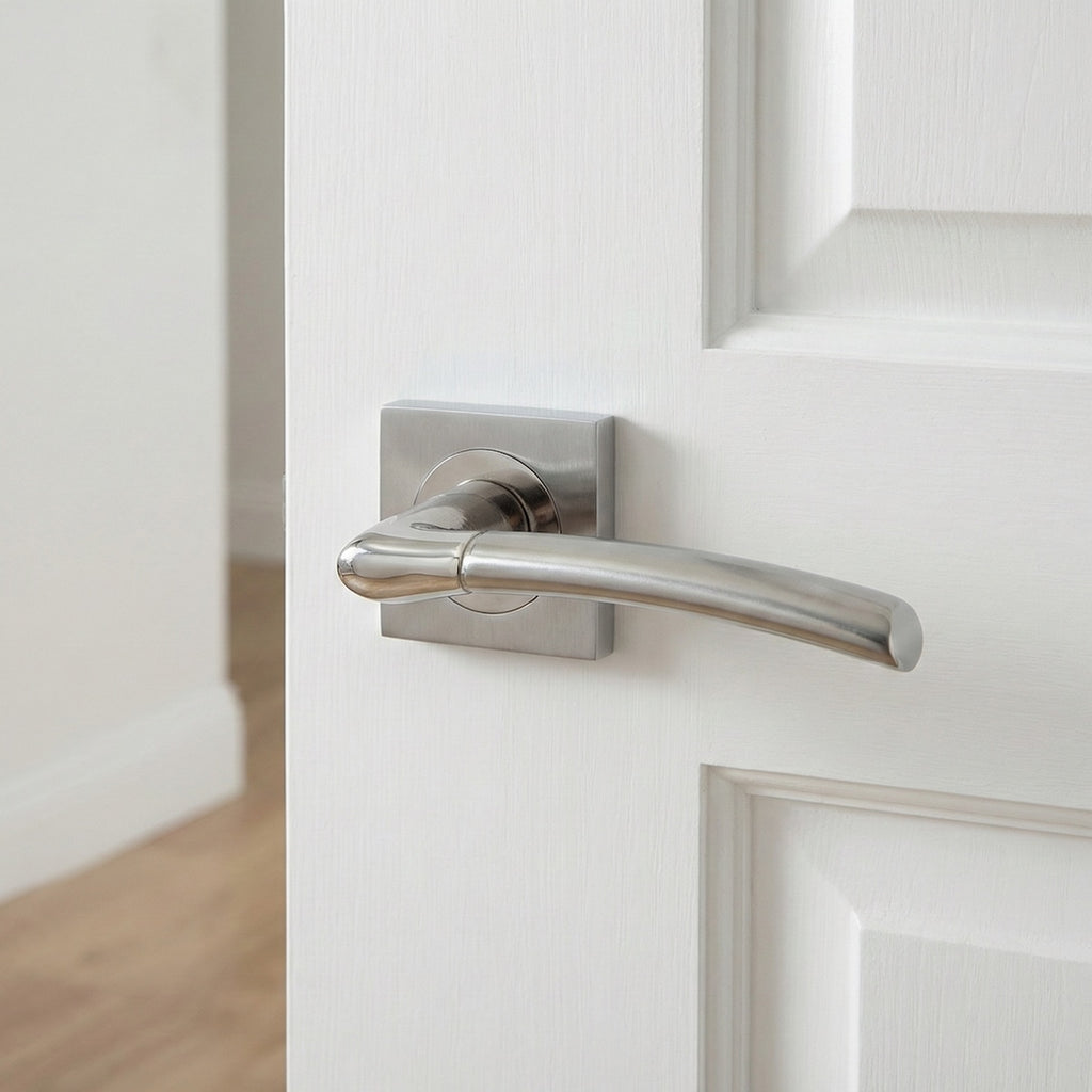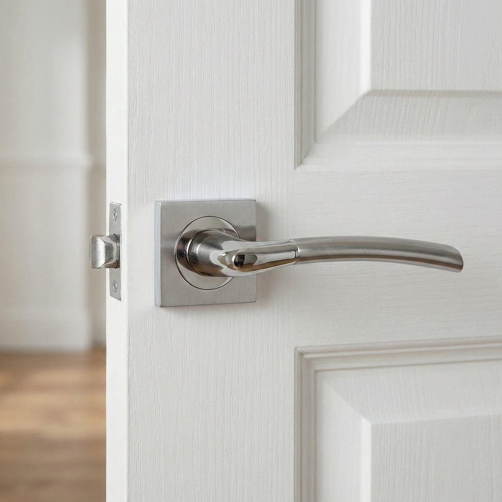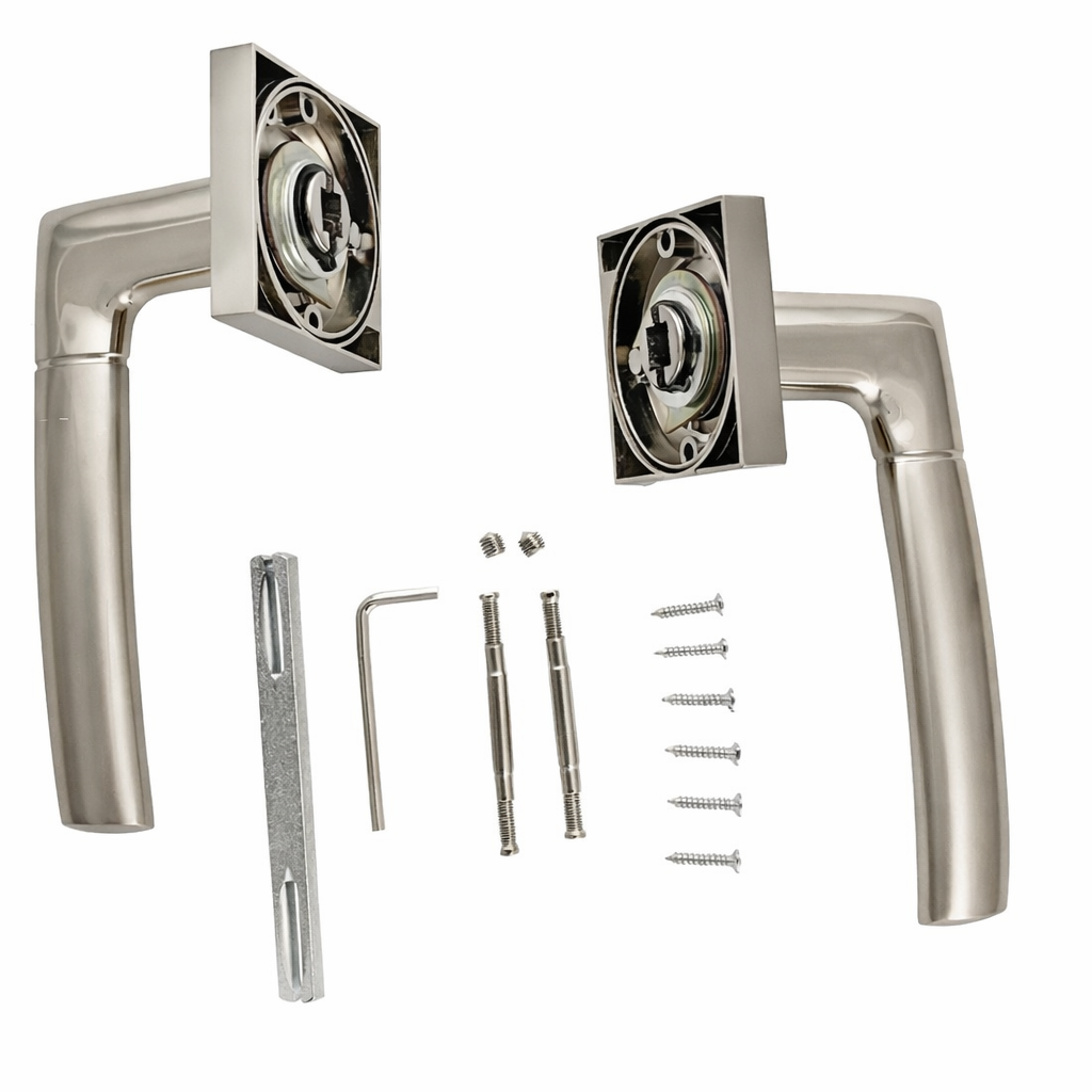 Juego de manillas (incluye 2 manillas para una puerta) Belenus de zamak con roseta cuadrada y en acabado bicolor modelo 430 para puertas de interior y de paso. Esta elegante y vanguardista manilla es de gran calidad gracias a su resistente y bien acabado material. Sigue una linea moderna y vistosa capaz de dar mayor presencia en aquellos espacios donde se instale. Además, viene preparada para destacar como objeto funcional en tus puertas. Todos los accesorios necesarios para su instalación vienen incluidos ¿A que esperas para cambiar las rosetas de tus puertas?