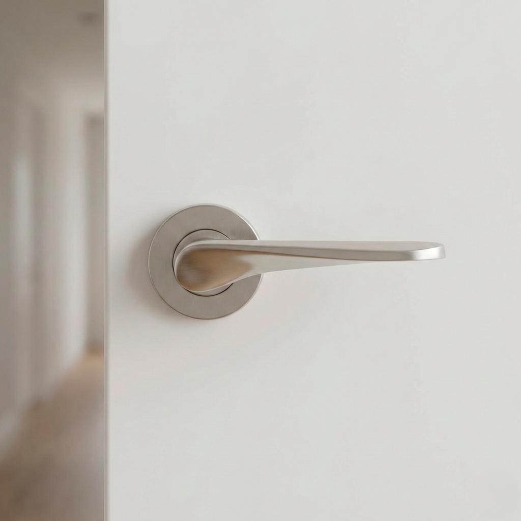 Juego de manillas (incluye 2 manillas para una puerta) con roseta redonda y asa curva de acero inoxidable para puertas de interior y de exterior. Esta roseta de línea vanguardista es ideal para instalar tanto en interior como en exterior debido al material del que está compuesta. Es resistente a ambientes salinos y corrosivos y sigue una línea elegante que permite estilizar cualquier puerta y aportar esos pequeños detalles que cambian la decoración de tu casa. Esta preparada para soportar una gran intensidad de uso por lo que ¿A qué esperas para cambiar las manillas de tus puertas?