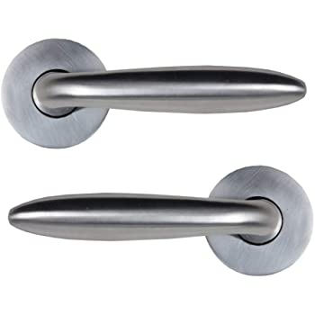 Juego de manillas (incluye 2 manillas para una puerta) macizas con roseta redonda en acero inoxidable para puertas de interior y de exterior. Esta manilla con roseta redonda es una manilla completamente original. Su relación calidad precio es inigualable debido a el diseño de su asa que hacen de esta una roseta cómoda, práctica y de muy buena calidad. Esta roseta encaja con el diseño y acabado de cualquier tipo de puerta debido a su elegante diseño. Además, soporta una gran intensidad de uso tanto en interior como en exterior y viene con todos los accesorios de instalación incluidos ¿A qué esperas para cambiar las manillas de tus puertas?