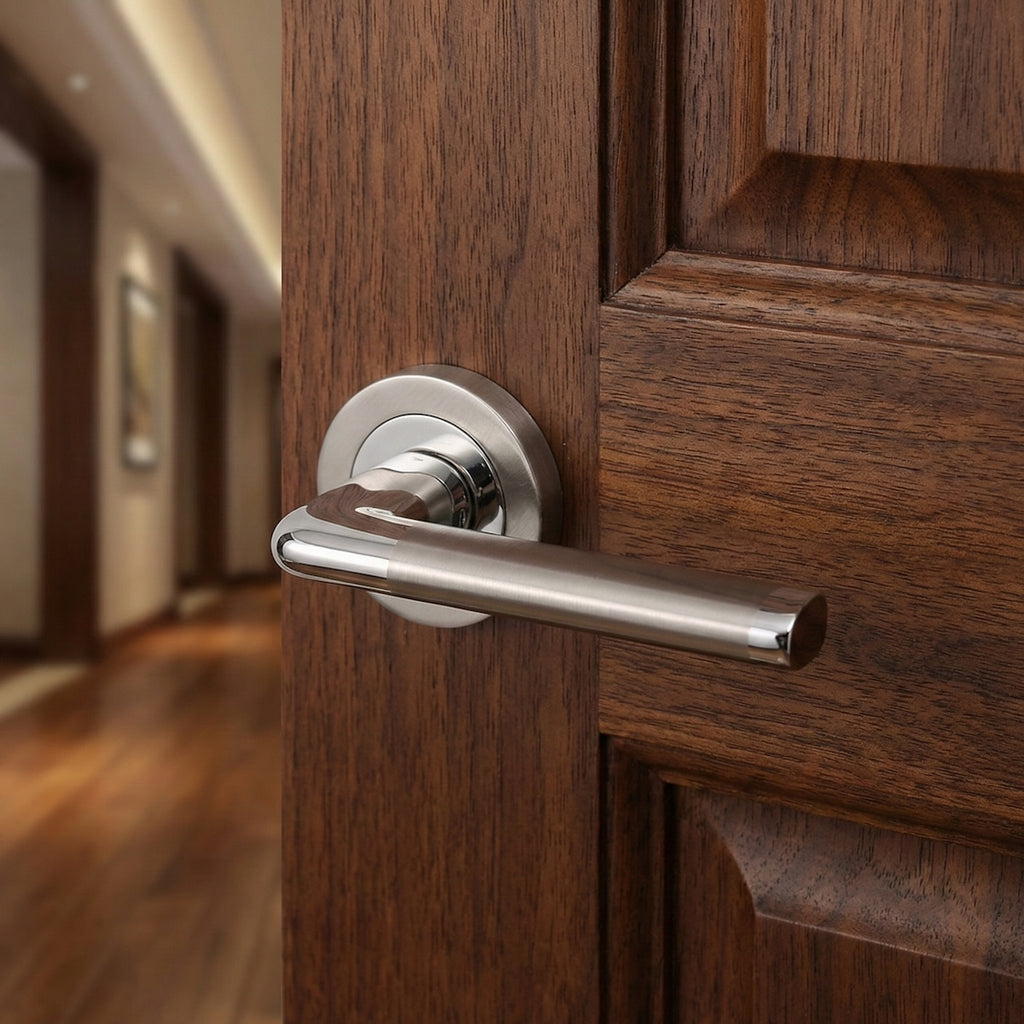 Juego de manillas (incluye 2 manillas para una puerta) de zamak modelo 140 con roseta redonda y acabado bicolor para puertas de interior y de paso. Esta manilla está hecha de Zamak lo cual la hace más resistente, duradera y preparada para soportar una gran intensidad de uso. Su acabado bicolor la estiliza para combinar con cualquier puerta y hacerla más elegante. Además, viene con todos los accesorios de instalación y preparada para deslumbrar ¿A qué esperar para conseguirla?