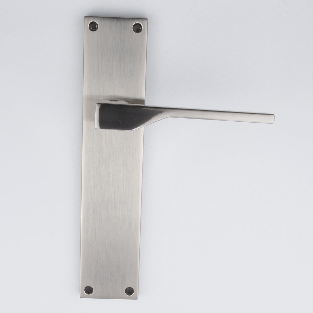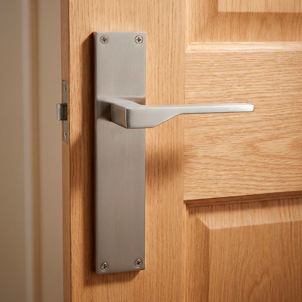 Juego de manillas (2 manillas; 1 manilla para cada lado de la puerta) con placa rectangular de zamak en acabado níquel satinado para puertas de interior modelo 520. Esta elegante y duradera manilla de zamak es ideal para las puertas de tu hogar. Su diseño vanguardista hará que tus puertas reluzcan como nunca antes. Además, viene con todos los accesorios necesarios para su instalación por lo que ¿A qué esperas para renovar las manillas de tus puertas?