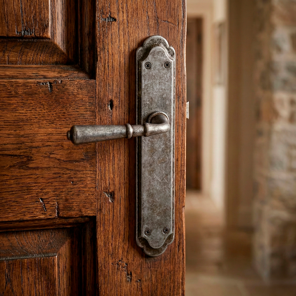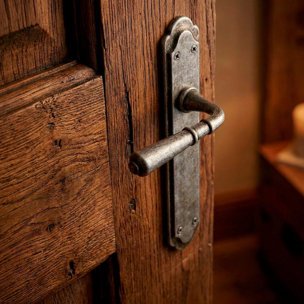 Juego de manillas (2 manillas; 1 manilla para cada lado de la puerta) de zamak con placa ovalada curva en acabado negro envejecido para puertas de interior y exterior. Esta rústica manilla de zamak sigue un diseño muy original que podrás combinar con algunas de tus puertas. Es una manilla de gran calidad preparada para soportar una gran intensidad de uso y que además, viene con todos los accesorios necesarios para su instalación por lo que ¿A qué esperas para renovar las manillas de tus puertas?