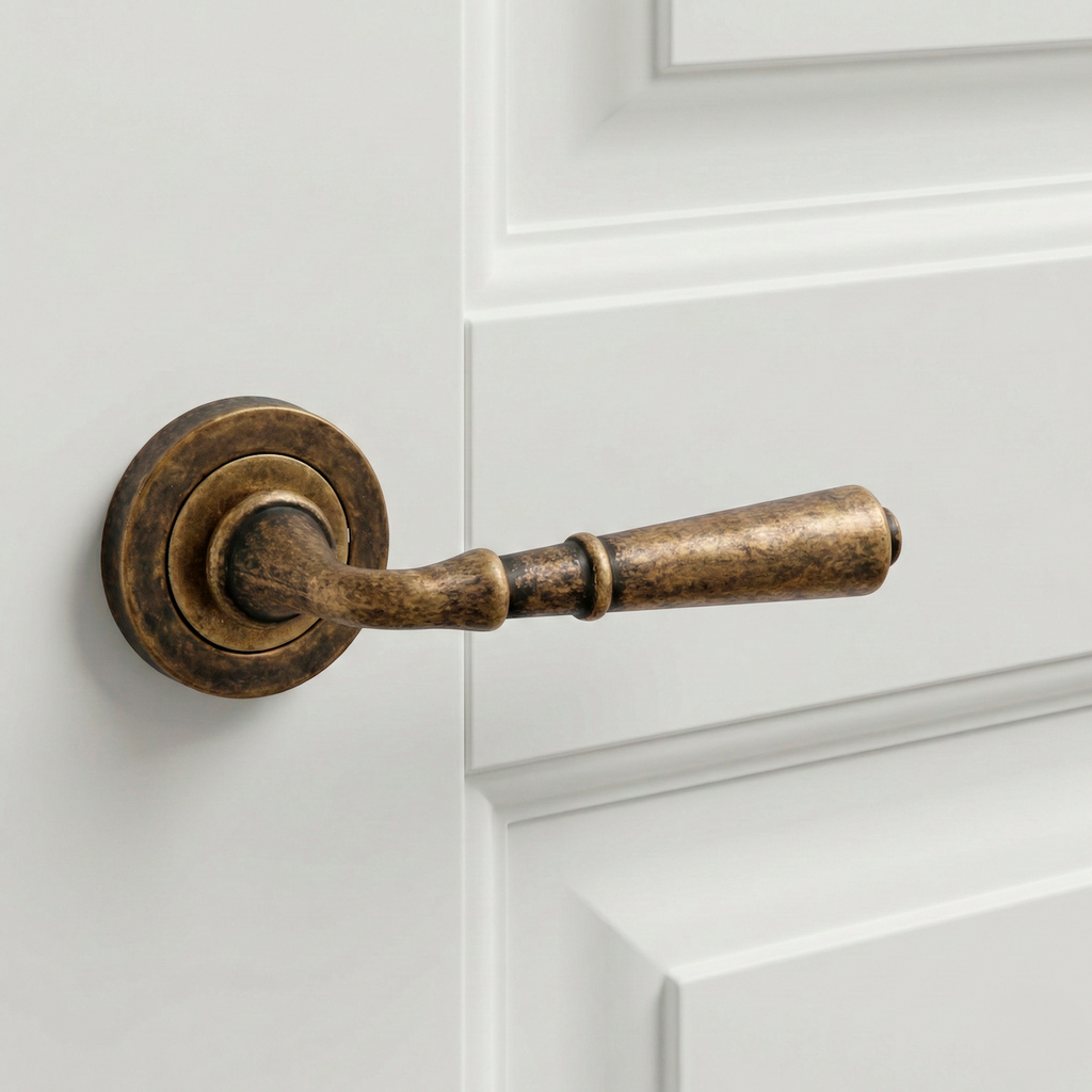 Juego de manillas (2 manillas para una puerta) de aluminio de estilo rústico con roseta redonda en acabado cuero envejecido ideal para puertas de interior y de paso. Esta manilla con roseta redonda tiene una acabado muy único que hace que sea una roseta que destaque de entre sus iguales. Su estilo rústico pero elegante aporta estética a esos pequeños detalles que marcan la diferencia entre un hogar cuidado y uno descuidado. Además, es una manilla preparada para ser la envidia de entre tus vecinos. Incluye todos los accesorios necesarios para su instalación ¿A que esperas para cambiar las manillas de tus puertas?