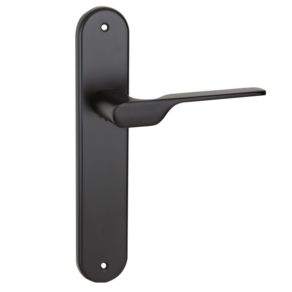 Juego de manillas (2 manillas; 1 manilla para cada lado de la puerta) con placa ovalada de zamak en negro para puertas de interior modelo 640. Este modelo de manilla es ideal para las puertas de tu hogar. Su diseño vanguardista, su acabado reluciente, su material resistente y duradero aseguran un buen producto.