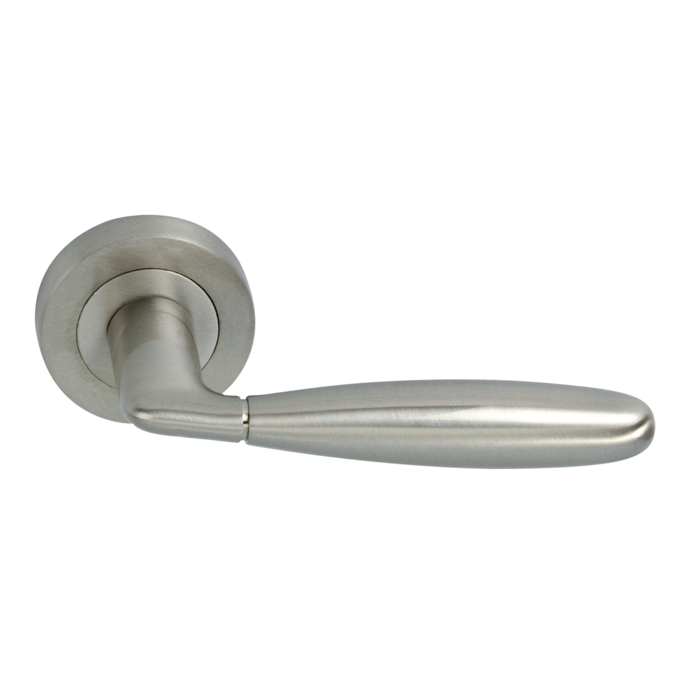 Este juego de manillas (incluye 2 manillas para una puerta) con roseta redonda forma parte del sector de la joyería del herraje. Es una manilla con roseta redonda de latón en acabado níquel satinado. Tiene un diseño vanguardista, elegante, cuidado y bien acabado y por ello aporta una sensación de luminosidad y amplitud en los espacios y a las puertas en donde se instala. Además, soporta una gran intensidad de uso y viene con todos los accesorios preparados para su instalación. Por último, esta manilla tiene una duración de muchos años debido a su gran calidad en los materiales por lo que ¿A que esperas para renovar las manillas de tus puertas?