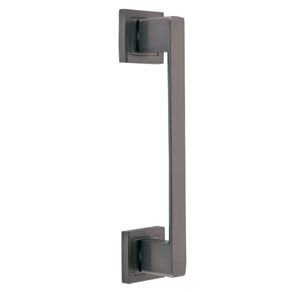 Manillón modelo 224 de zamak en acabado grafito con roseta cuadrada ideal para puertas correderas. Su moderno y elegante diseño le permite ser perfectamente combinable en cualquier puerta. Además, viene con todos los accesorios necesarios para su instalación.