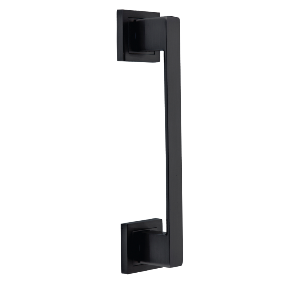 Manillón modelo 224 de zamak en acabado negro con roseta cuadrada ideal para puertas correderas. Su moderno y elegante diseño le permite ser perfectamente combinable en cualquier puerta. Además, viene con todos los accesorios necesarios para su instalación.