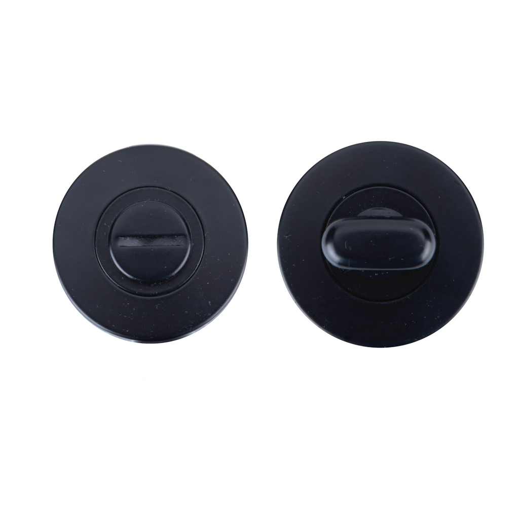 Práctica Muletilla roseta redonda de 50mm para puerta interior fabricado en acero inoxidable con acabado negro. Si deseamos mayor intimidad, ésta es la opción perfecta.