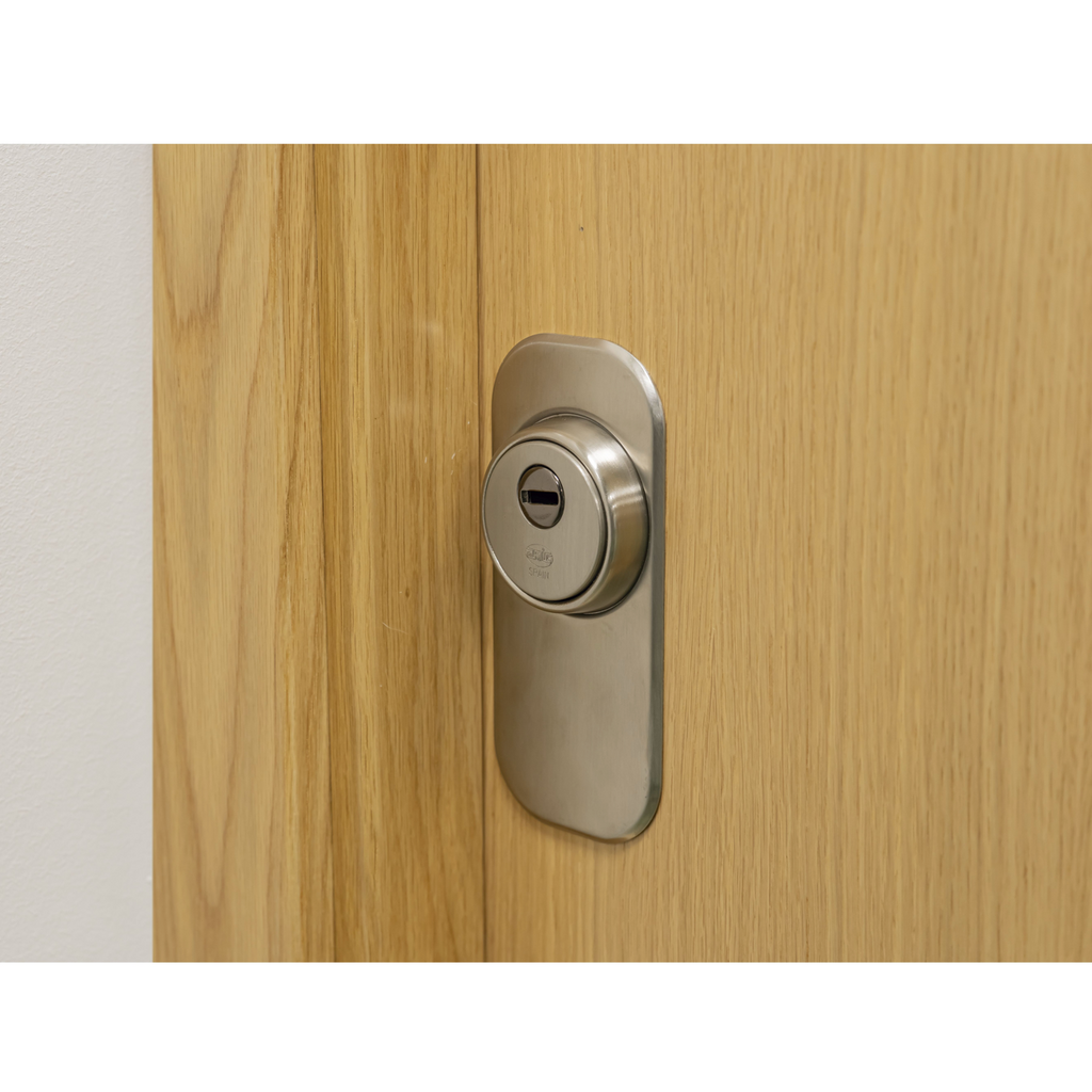 - Ao mesmo tempo, o revestimento do escudo também aumenta ligeiramente a segurança da porta , dificultando o acesso ao cilindro e à fechadura.