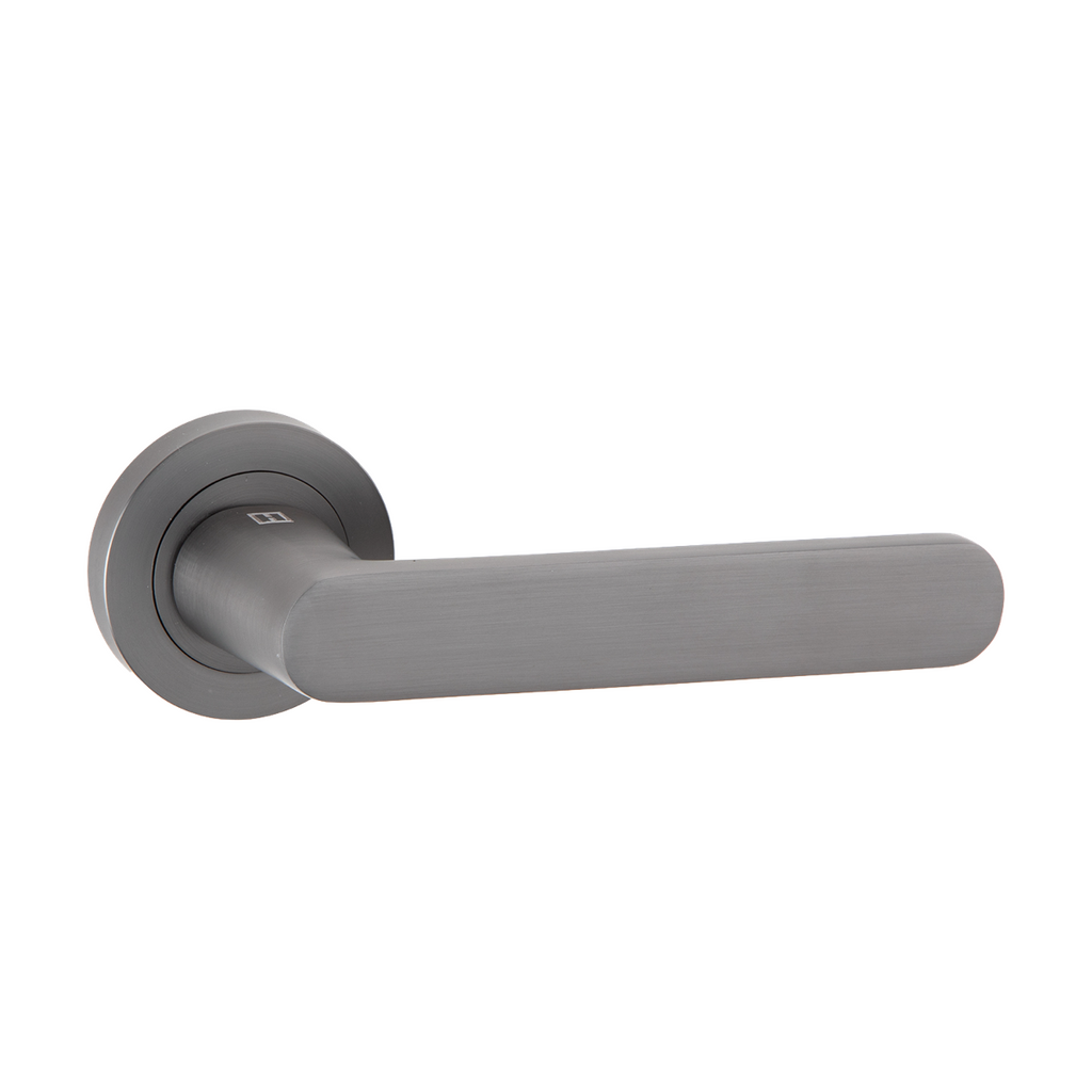 Juego de roseta redonda acabado en grafíto para puertas de madera de interior.