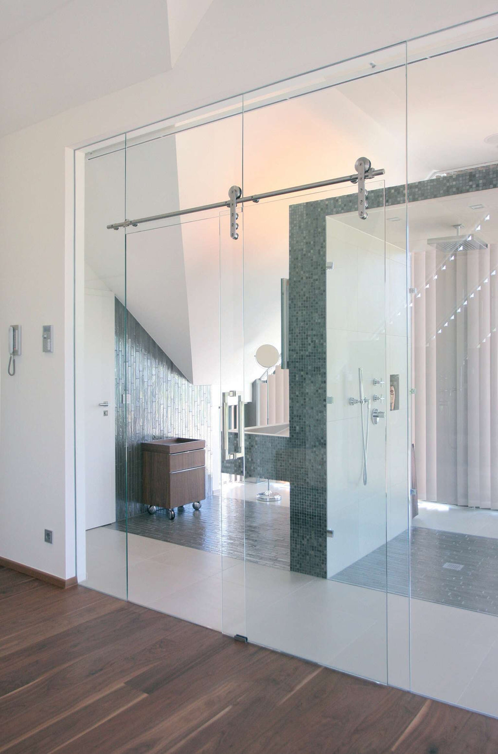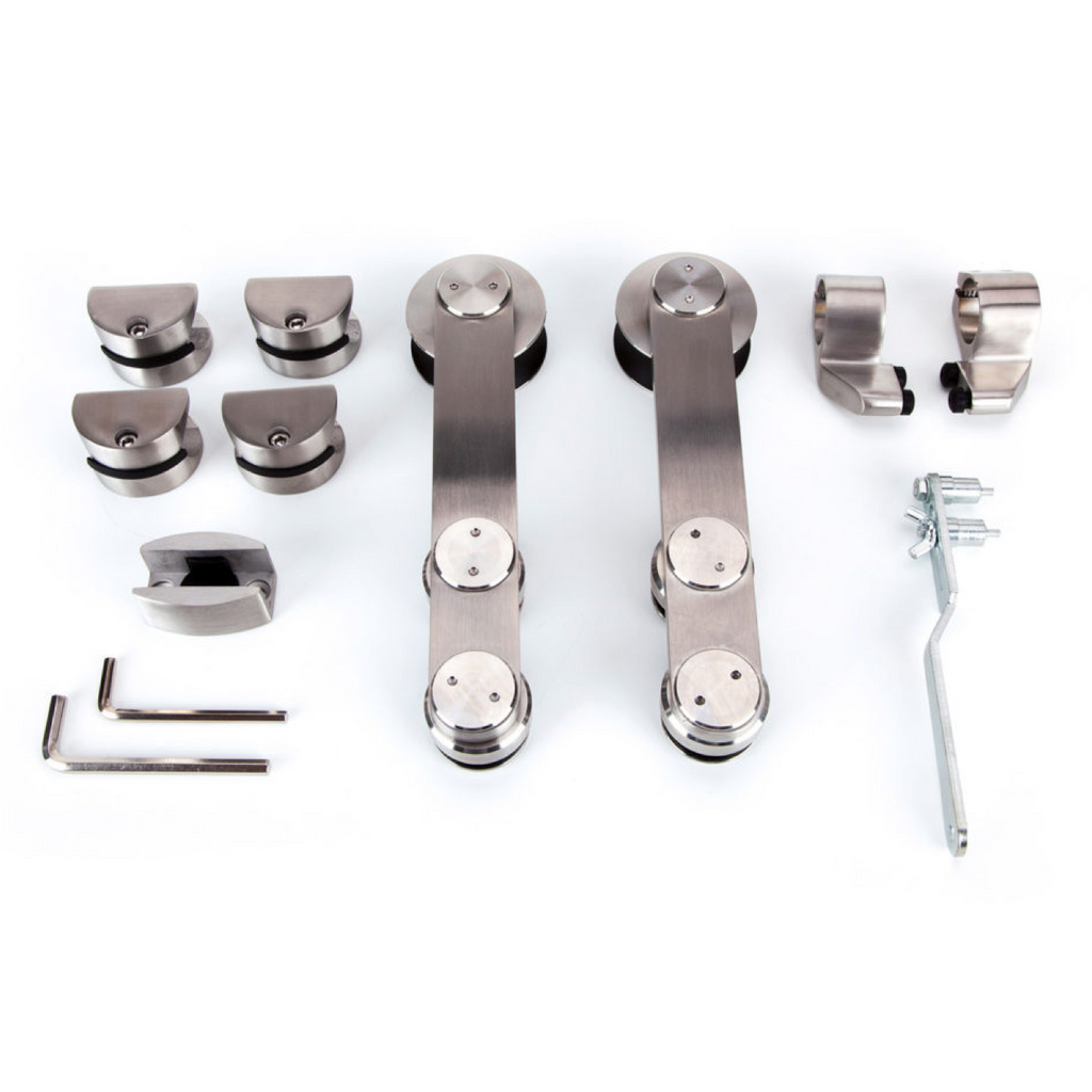 Este Kit inclui todas as ferragens para instalação de uma porta de vidro deslizante. O Kit é fabricado em aço inoxidável preparado tanto para interior como exterior e inclui: